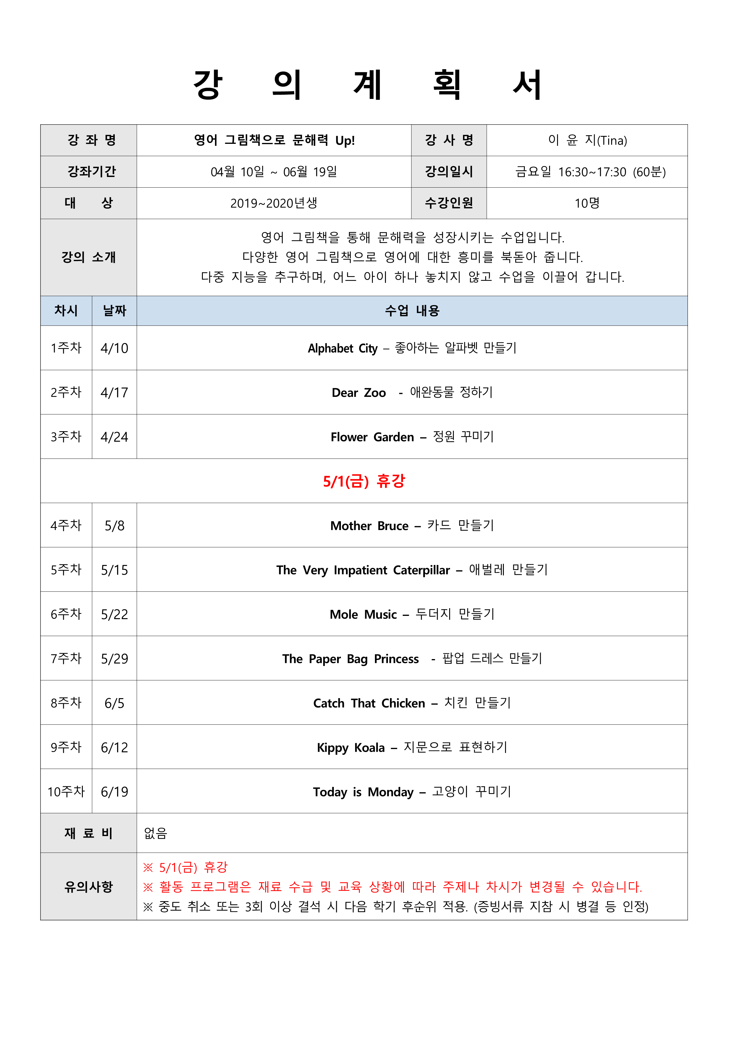 | 영어 그림책으로 문해력 Up! (2020~2021년생) 기간종료 |
